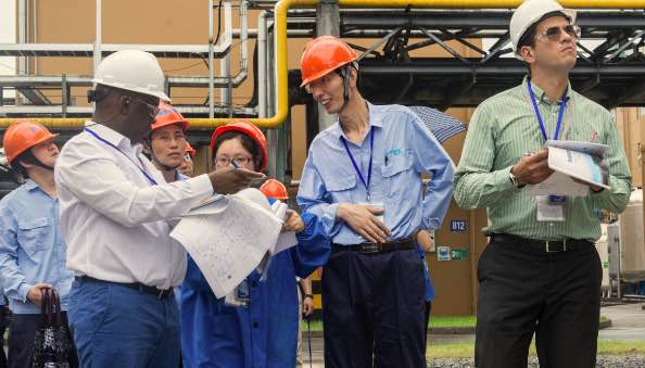 7月5日上午,OPCW視察組和國(guó)家代表、省市陪同人員在聽(tīng)取核查前情況介紹后,共同前往公司生產(chǎn)區(qū)域進(jìn)行了現(xiàn)場(chǎng)核查。視察組一行在察看企業(yè)總平面布置之后,分別對(duì)生產(chǎn)裝置、工藝流程等作了詳細(xì)了解,核實(shí)了企業(yè)生產(chǎn)經(jīng)營(yíng)中的相關(guān)記錄、原始臺(tái)賬、報(bào)表等,公司陪同人員客觀、專業(yè)的回答了核查組提出的各類問(wèn)題。